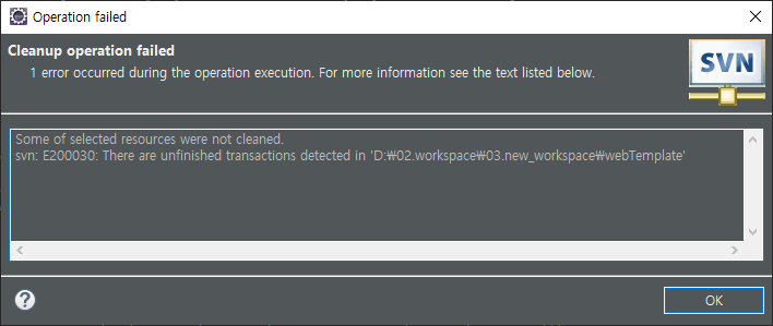 [SVN] svn: E200030: There are unfinished transactions detected in '경로' 에러