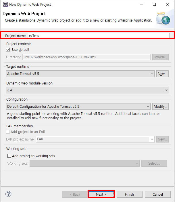 * 참고로 Tomcat 5.5 서버 세팅은 해놓은 상태이다.