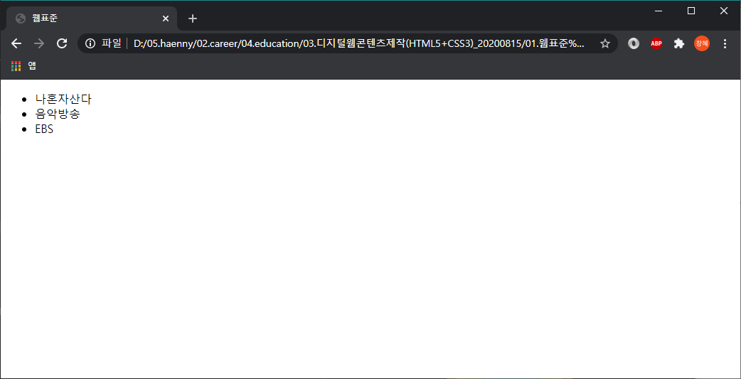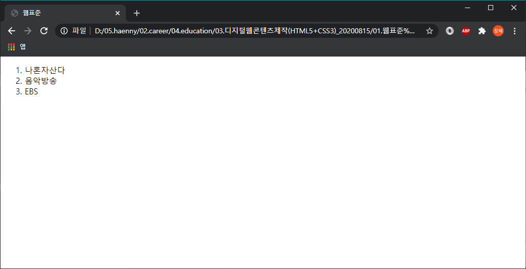 [HTML5] 목록을 정의하는 태그 : <ul>, <ol>, <dl>