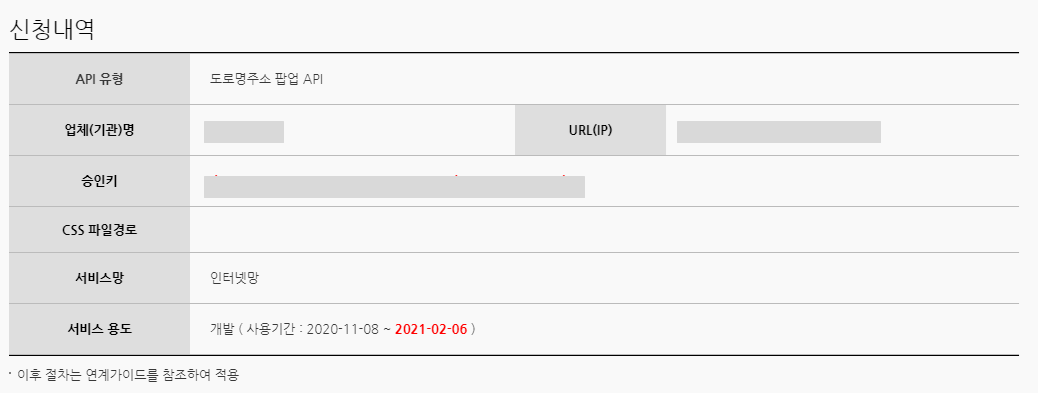 1. 도로명주소 오픈API 신청한 후 키 발급받기