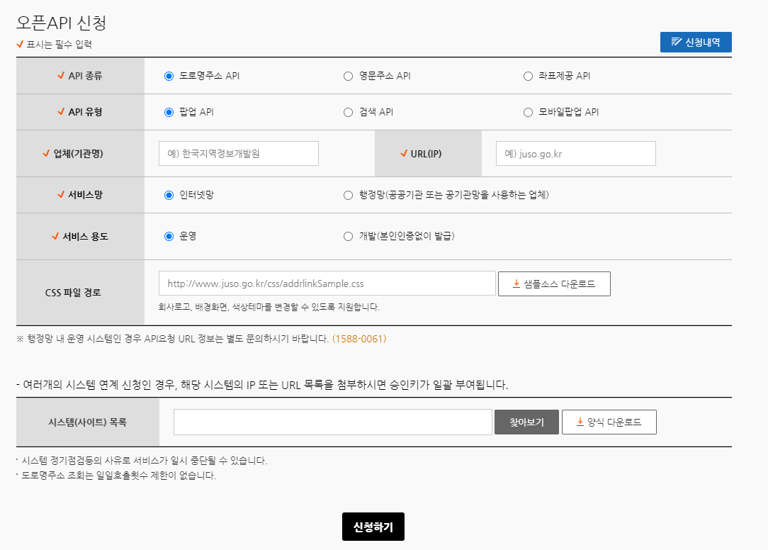 API 신청하기 | 오픈API | 도로명주소 개발자센터