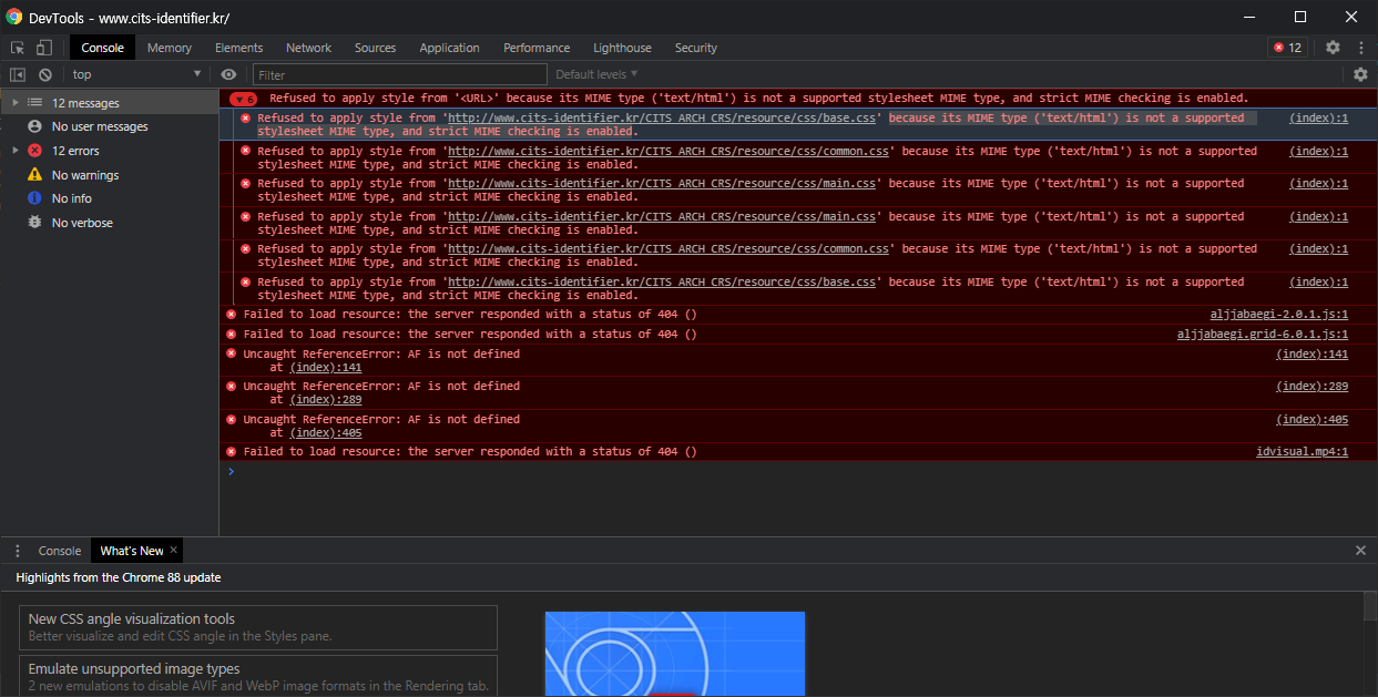 ** 프로젝트 ContextPath 설정을 하게 되면 다음과 같은 css/js 경로 에러가 발생하니 ContextPath를 제외하고 설정해보자.
