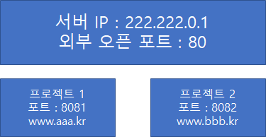 222.222.0.1:80/프로젝트1 혹은 222.222.0.1:80/프로젝트2 로 접근하면 된다.