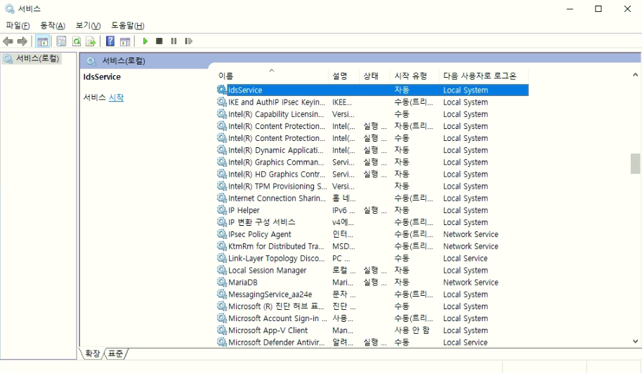 내가 명명한 서비스 명으로 등록이 되었는 지 확인한다.