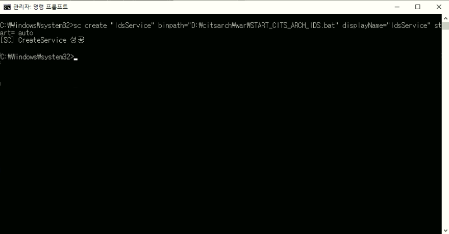 sc create "등록할 서비스 명" binpath="배치파일 경로" displayName="등록할 서비스 명" start= auto