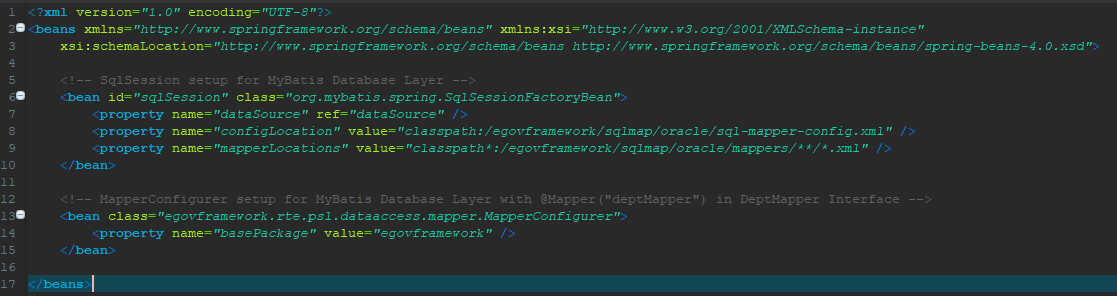 전자정부 프레임워크를 사용하는 경우 context-sqlMap.xml 파일을 열어서 위와 같이 경로를 찾아가면 된다.