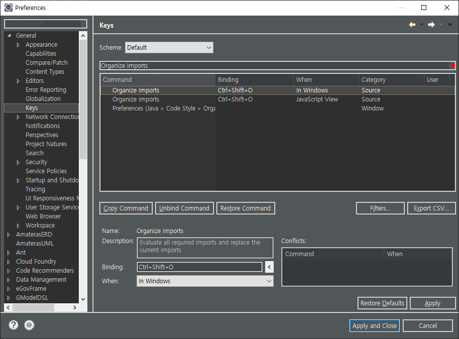 [Eclipse] Organize Imports 단축키 에러, "Ctrl + Shift + O" 동작하지 않을 때 해결방법