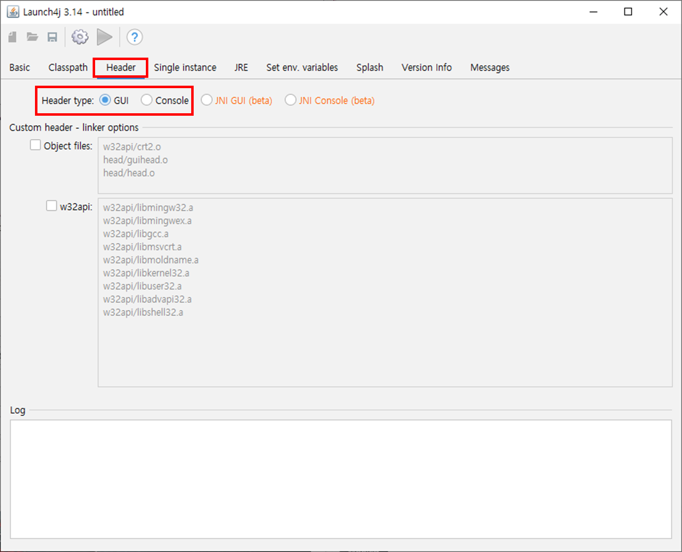Header type GUI인지 Consoleㅇ인지 타입 설정