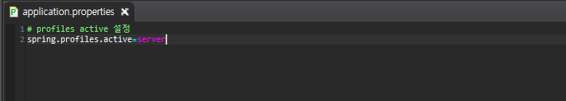 마찬가지로 개발환경과 실서버환경에 맞게 설정을 해준 뒤, application-properties에는 spring-profiles-active 값을 파일명과 동일한 값(예를들어 server 혹은 local)으로 설정해주면 된다.