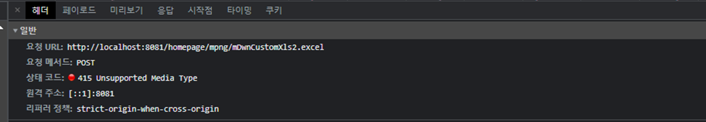 한번쯤 만나봤을 이 골치아픈 415는 클라이언트(View)와 서버(Controller)의 요청/응답하는 데이터의 매개변수 설정이 잘못되었을 때 주로 발생한다.