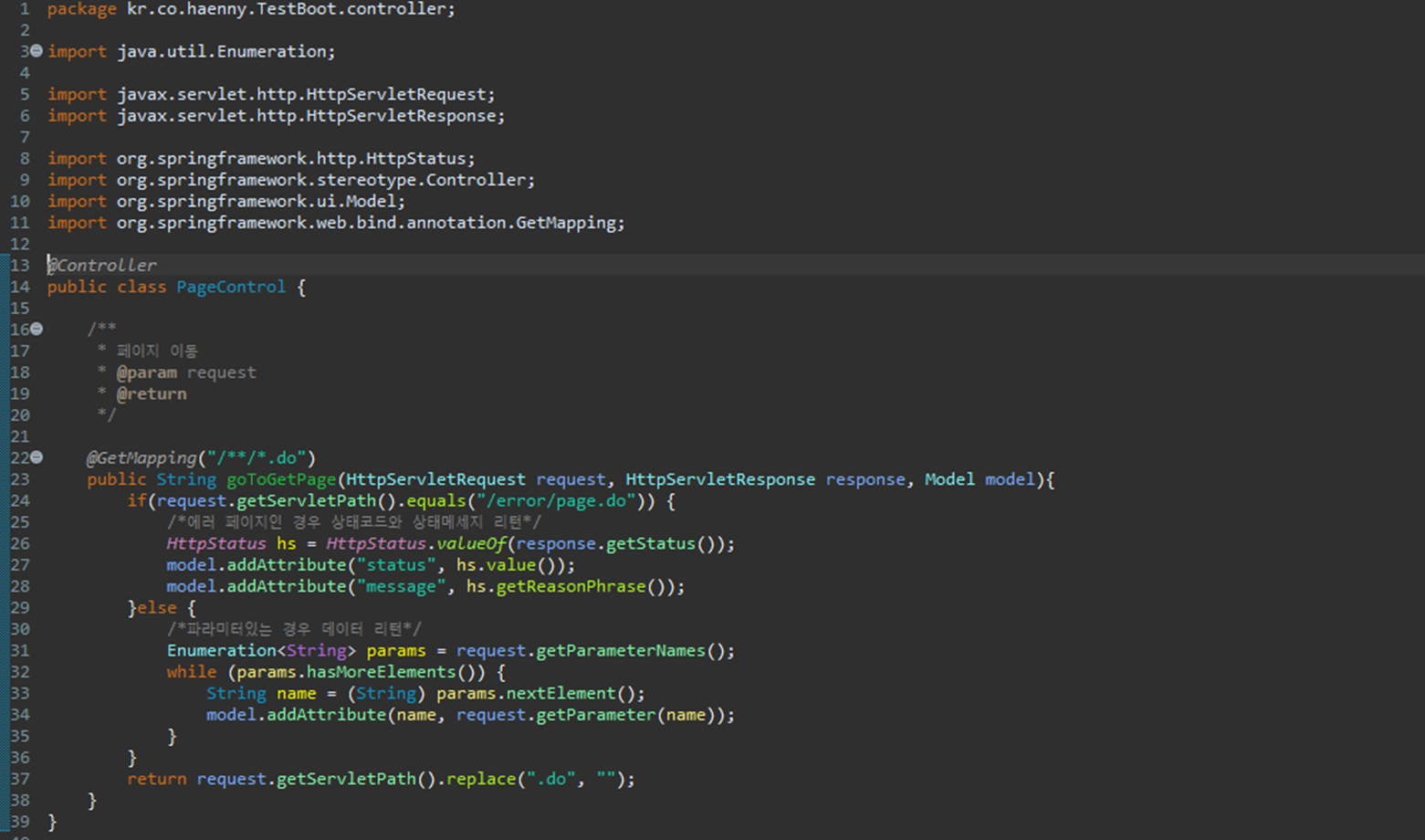 사실 Page Controller는 전자정부프레임워크 프로젝트에서 사용해왔던 PageController를 그대로 가져왔는데,
