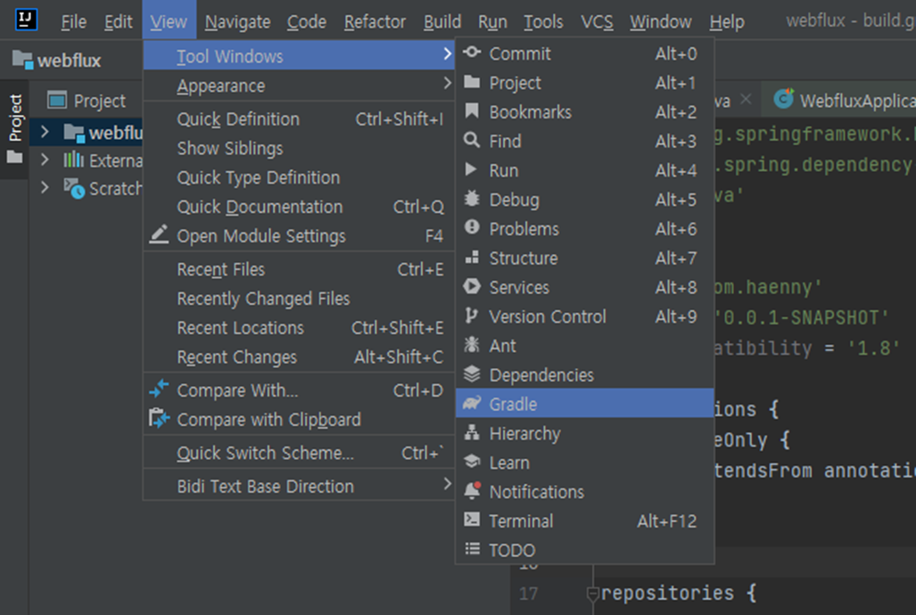 View - Tool Windows - Gradle
