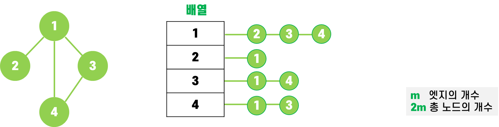 여기서 엣지의 개수가 m개라면, 총 노드의 개수는 2m개가 된다. (두 개의 노드가 서로 연결되는 것이기 때문에)