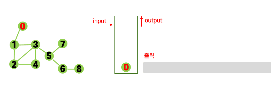 위의 예제는 0번 노드부터 시작해서 그래프를 순회해보자.