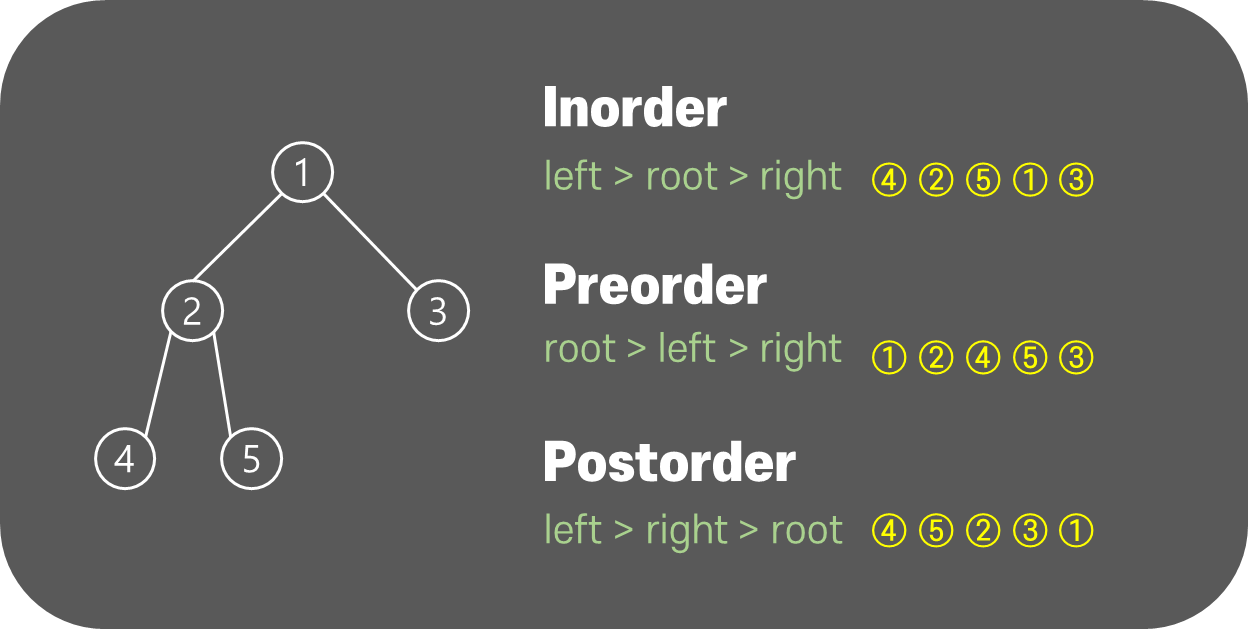 // 자기 자신 출력 > left node 재귀호출을 다 돌고난 후 > right node 재귀호출
