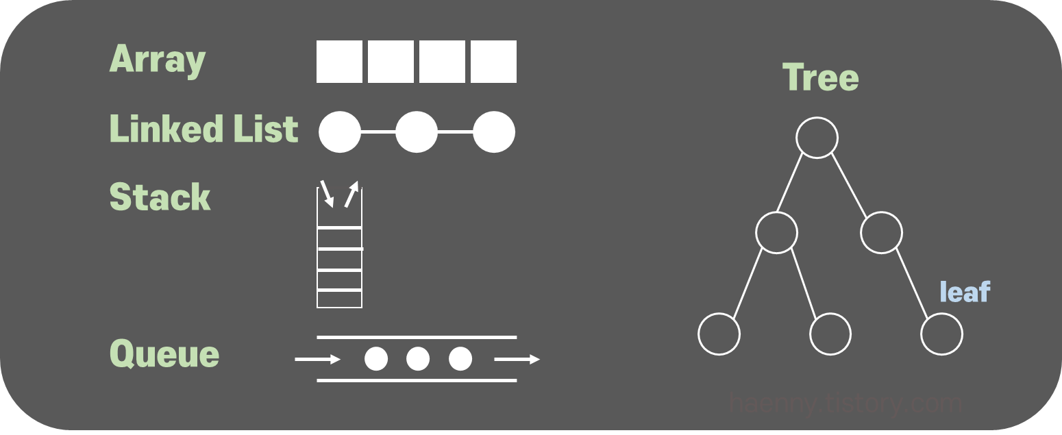 그 동안 많이 접해왔던 Array, LinkedList, Stack, Queue 와 같이 라인처럼 생긴 일직선 데이터들이 있다면,