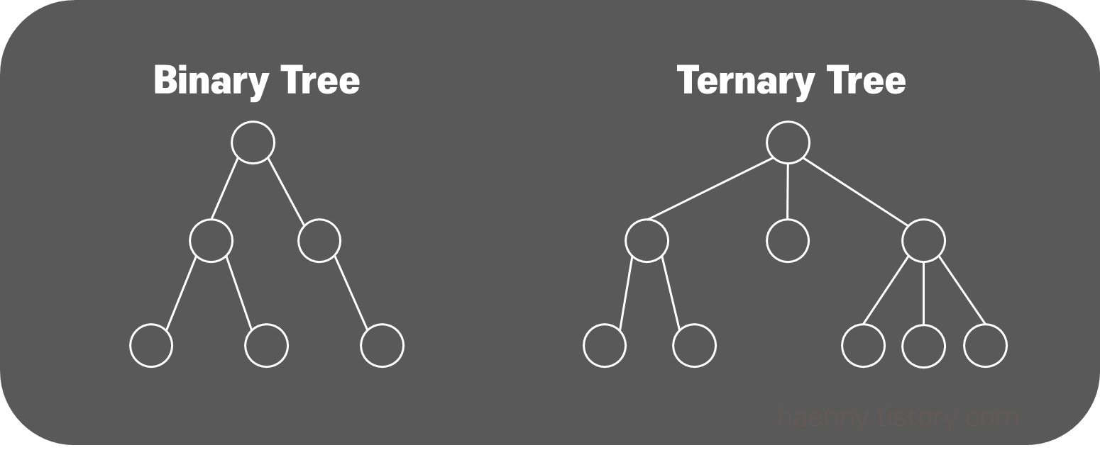 마찬가지로 자식노드가 최대 3개까지 붙는 트리는 Ternary Tree라고 한다.