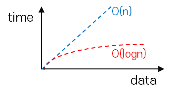 대표 알고리즘인 이진검색(binary search) 의 시간복잡도로, 한 번 단계를 거칠 때마다 처리시간이 절반씩 줄어드는 알고리즘의 시간복잡도