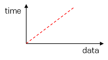 n 개의 데이터를 받으면 n번 loop를 돌기 때문에, n의 크기가 늘어나면 그만큼 비례해서 처리 속도가 늘어난다.