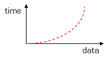 n개의 입력데이터가 각각 n번씩 스텝을 밟아 데이터가 커질수록 처리시간이 커지는 알고리즘의 시간복잡도