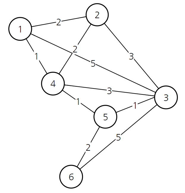 | 정점(노드) 번호 | 1 | 2 | 3 | 4 | 5 | 6 |