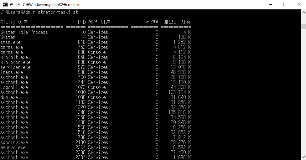 tasklist : 기본 프로세스 목록