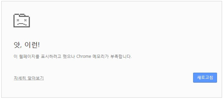 크롬 인터넷 창이 갑자기 꺼진 경험이 있는 사용자라면 크롬 메모리 부족문제를 겪은 경험이 있을 것이다.