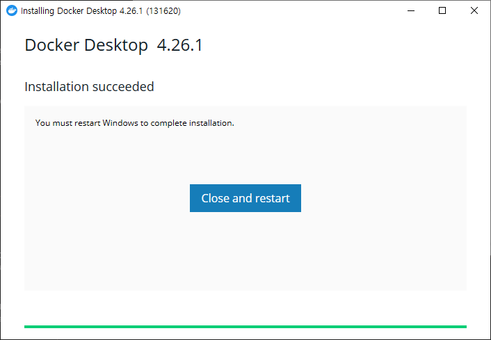 - 설치 완료 후 재부팅 필요