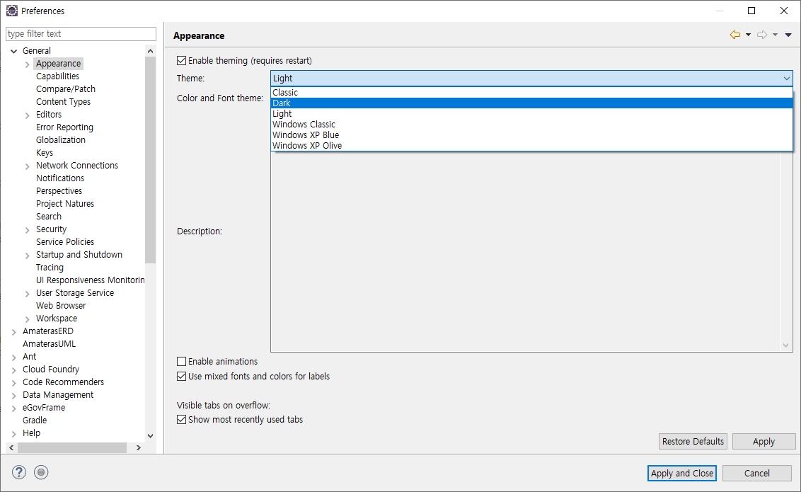 [Eclipse] 이클립스 테마 변경하기(Dark 버전)