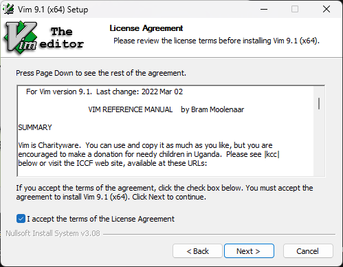 윈도우 환경에서는 vim 제공하지 않기 때문에 따로 설치가 필요함