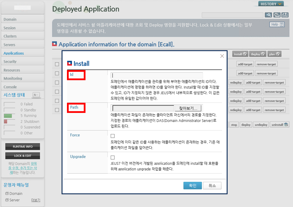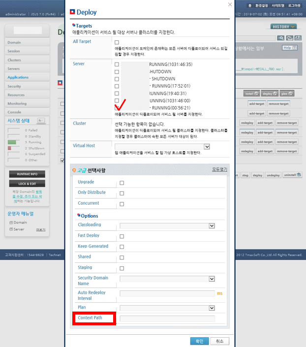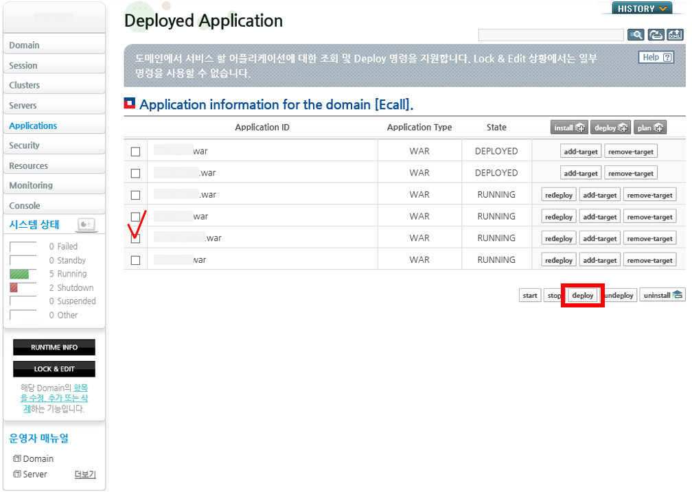 9. 이제 다시 Application 메뉴로 돌아와 설치했었던 어플리케이션을 선택한 후 deploy를 해준다.