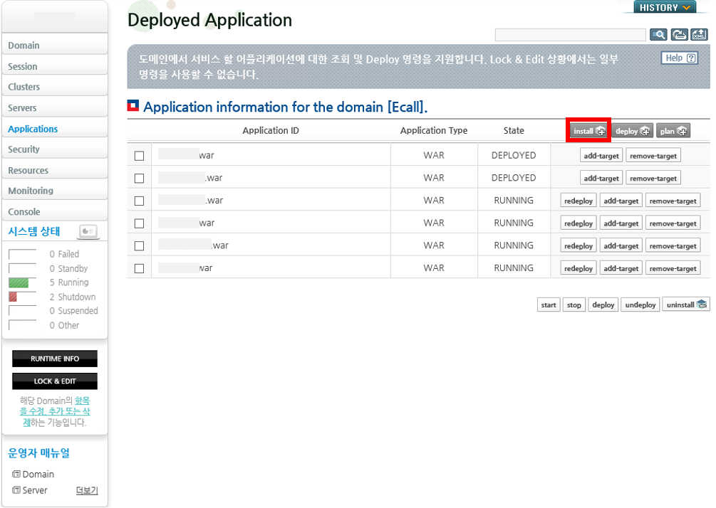 1. Application 메뉴에서 install을 클릭한다.