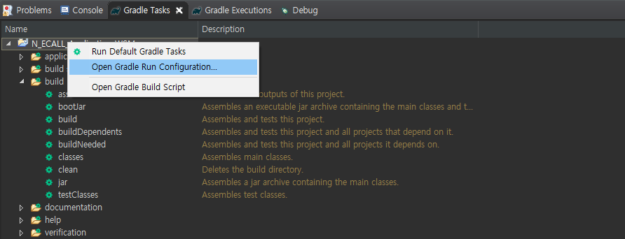 새로운 방법으로 Gradle Tasks 에서 프로젝트 Open Gradle Run Configuration 의 JAVA HOME을 설정해주었다