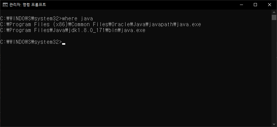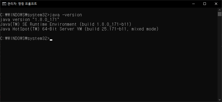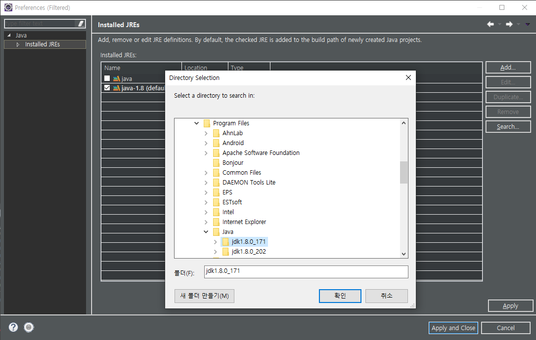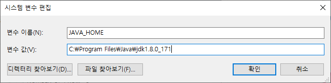 JAVA 버전 1.8.0_171이 C:java가 아닌 C:Program Files:Java 에 jdk 폴더가 있다