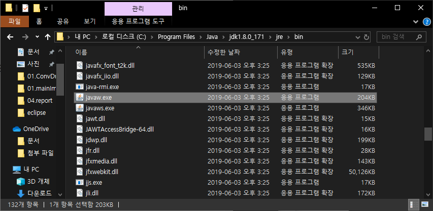 - java 1.8 버전의 javaw.exe 파일의 경로를 복사한다.